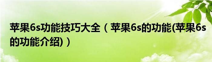 大家好,小常来为大家解答以上问题。苹果6s功能技巧大全,苹果6s的功能(苹果6s的功能介绍)很多人还不知道,现在让我们一起来看看吧!