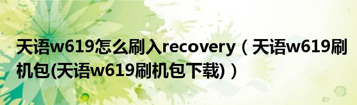 大家好,小常来为大家解答以上问题。天语w619怎么刷入recovery,天语w619刷机包(天语w619刷机包下载)很多人还不知道,现在让我们一起来看看吧!