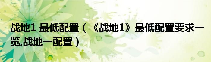 大家好,小常来为大家解答以上问题。战地1 最低配置,《战地1》最低配置要求一览,战地一配置很多人还不知道,现在让我们一起来看看吧!