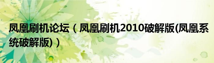 大家好,小常来为大家解答以上问题。凤凰刷机论坛,凤凰刷机2010破解版(凤凰系统破解版)很多人还不知道,现在让我们一起来看看吧!