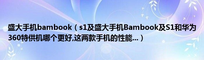 8,现在盛大手机Bambook S1和华为360特供机那个好? :目前都还没正式上市,不好说是不是吸费机。至于担心手机吸费主要是费流量,关掉上网功能就可以啦。不过我比较喜欢盛大,理由:1、外观比华为闪耀(360特供机)漂亮,华为的机子个个都一个样!2、配件有创意,0辐射耳机、竹筒扩音器3、上市预定的时间也比360特供机快,盛大Bambook手机6月28日中午12点预定7月发货,360特供机7月份预定8月发货。