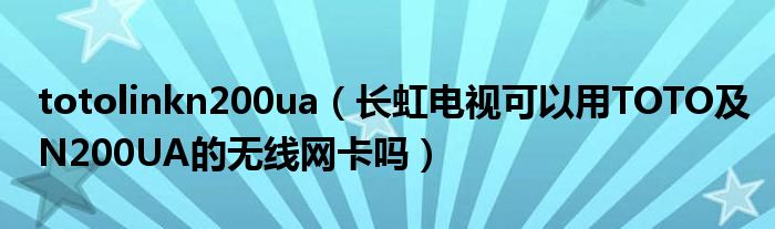 大家好,小常来为大家解答以上问题。totolinkn200ua,长虹电视可以用TOTO及N200UA的无线网卡吗很多人还不知道,现在让我们一起来看看吧!