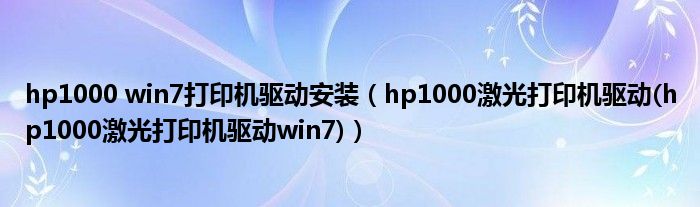 大家好,小常来为大家解答以上问题。hp1000 win7打印机驱动安装,hp1000激光打印机驱动(hp1000激光打印机驱动win7)很多人还不知道,现在让我们一起来看看吧!
