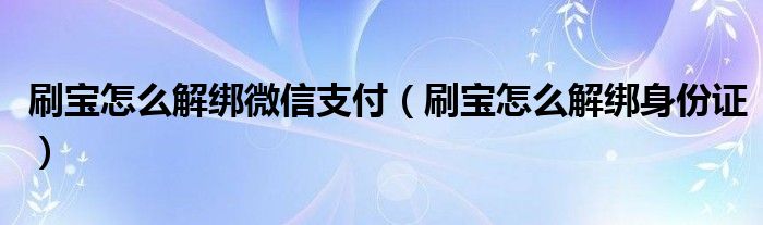 大家好,跳跳为你解答以上问题。刷宝怎么解绑微信支付,刷宝怎么解绑身份证这个问题很多人还不知道,现在让我们一起来看看吧!
