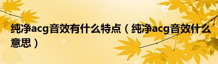 大家好,跳跳为你解答以上问题。纯净acg音效有什么特点,纯净acg音效什么意思这个问题很多人还不知道,现在让我们一起来看看吧!
