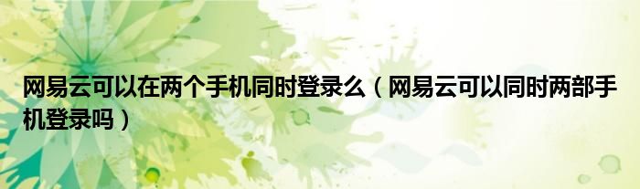 解答:1、网易云可以同时用两部手机登录,因为网易云音乐账号不在线也不离线(也就是不会像QQ或者游戏一样另一台设备登录)。因此多个设备可以同时登录。