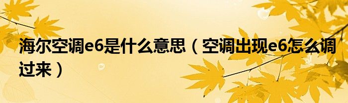 大家好,小叶为你解答以上问题。海尔空调e6是什么意思,空调出现e6怎么调过来这个问题很多人还不知道,现在让我们一起来看看吧!
