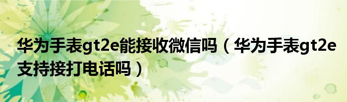 大家好,小叶为你解答以上问题。华为手表gt2e能接收微信吗,华为手表gt2e支持接打电话吗这个问题很多人还不知道,现在让我们一起来看看吧!