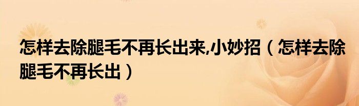 大家好,linda来为大家解答以上的问题。怎样去除腿毛不再长出来,小妙招,怎样去除腿毛不再长出很多人还不知道,现在让我们一起来看看吧!