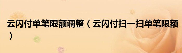 大家好,跳跳为你解答以上问题。云闪付单笔限额调整,云闪付扫一扫单笔限额这个问题很多人还不知道,现在让我们一起来看看吧!
