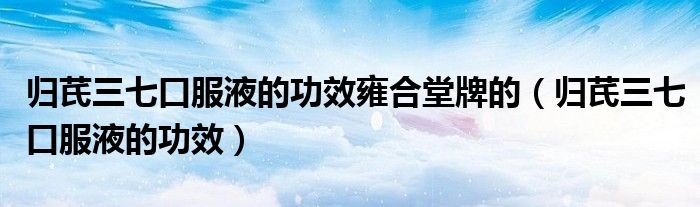 大家好,linda来为大家解答以上的问题。归芪三七口服液的功效雍合堂牌的,归芪三七口服液的功效很多人还不知道,现在让我们一起来看看吧!