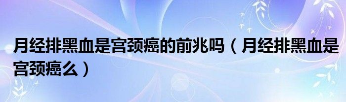 大家好,linda来为大家解答以上的问题。月经排黑血是宫颈癌的前兆吗,月经排黑血是宫颈癌么很多人还不知道,现在让我们一起来看看吧!