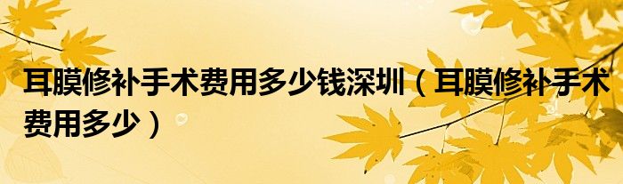 1、鼓膜修补手术,如果是单纯的鼓膜修补手术,手术费用在一万元左右,但也要看做手术的医院的水平和手术所用的材料。