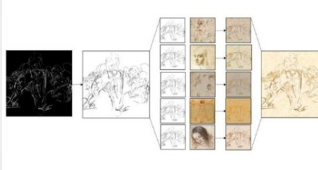 第一步是将隐藏的图像与X射线图像中的可见图像分离。由于这仍然是一项未解决的任务,研究人员不得不使用手工编辑。一旦给出了底图,就会采用神经风格迁移来重新创建这幅画。