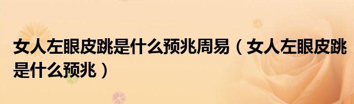 大家好,linda来为大家解答以上的问题。女人左眼皮跳是什么预兆周易,女人左眼皮跳是什么预兆很多人还不知道,现在让我们一起来看看吧!