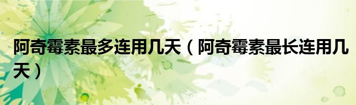 大家好,linda来为大家解答以上的问题。阿奇霉素最多连用几天,阿奇霉素最长连用几天很多人还不知道,现在让我们一起来看看吧!