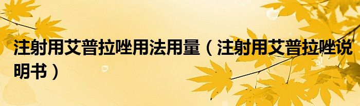 大家好,linda来为大家解答以上的问题。注射用艾普拉唑用法用量,注射用艾普拉唑说明书很多人还不知道,现在让我们一起来看看吧!