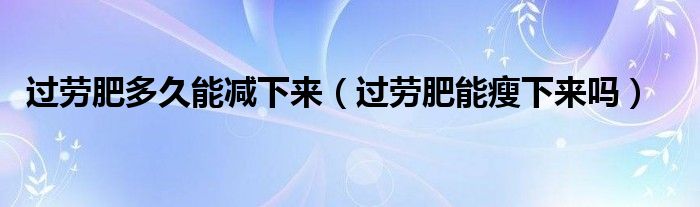 大家好,linda来为大家解答以上的问题。过劳肥多久能减下来,过劳肥能瘦下来吗很多人还不知道,现在让我们一起来看看吧!