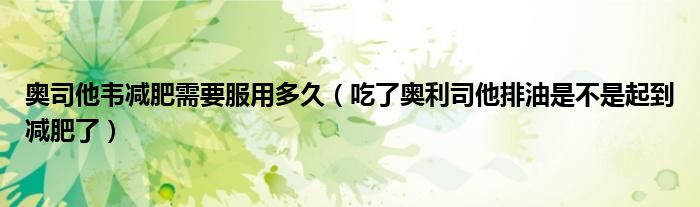 奥司他韦减肥需要服用多久(吃了奥利司他排油是不是起到减肥了)