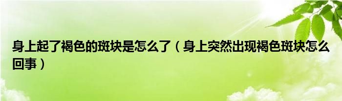 大家好,linda来为大家解答以上的问题。身上起了褐色的斑块是怎么了,身上突然出现褐色斑块怎么回事很多人还不知道,现在让我们一起来看看吧!