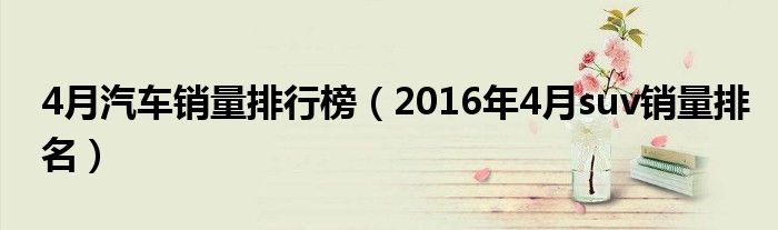 大家好,小常来为大家解答以下问题,对于4月汽车销量排行榜,2016年4月suv销量排名很多人还不知道,今天让我们一起来看看吧!