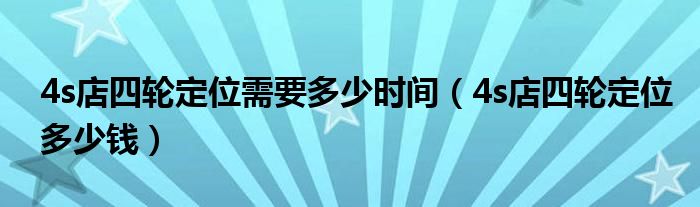 大家好,阳阳来为大家讲解下。4s店四轮定位需要多少时间,4s店四轮定位多少钱很多人还不知道,现在让我们一起来看看吧!