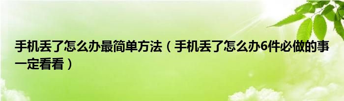 关于手机丢了怎么办最简单方法,手机丢了怎么办6件必做的事一定看看这个很多人还不知道,今天菲菲来为大家解答以上的问题,现在让我们一起来看看吧!