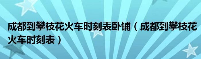 关于成都到攀枝花火车时刻表卧铺,成都到攀枝花火车时刻表这个很多人还不知道,今天菲菲来为大家解答以上的问题,现在让我们一起来看看吧!