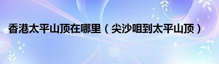关于香港太平山顶在哪里,尖沙咀到太平山顶这个很多人还不知道,今天菲菲来为大家解答以上的问题,现在让我们一起来看看吧!