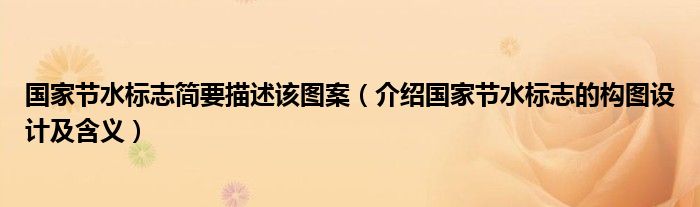 关于国家节水标志简要描述该图案,介绍国家节水标志的构图设计及含义这个很多人还不知道,今天菲菲来为大家解答以上的问题,现在让我们一起来看看吧!