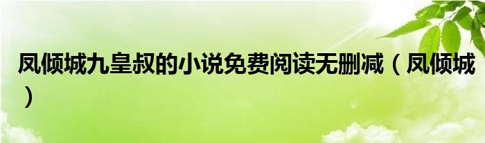 凤倾城九皇叔的小说免费阅读无删减(凤倾城)