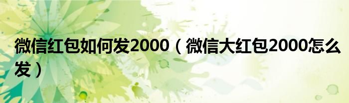 大家好,小晋来为大家解答以下问题,关于微信红包如何发2000,微信大红包2000怎么发很多人还不知道,今天让我们一起来看看吧!