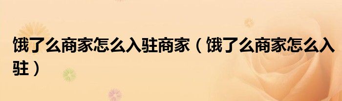 大家好,来宝来为大家解答以下问题,饿了么商家怎么入驻商家,饿了么商家怎么入驻很多人还不知道,今天让我们一起来看看吧!