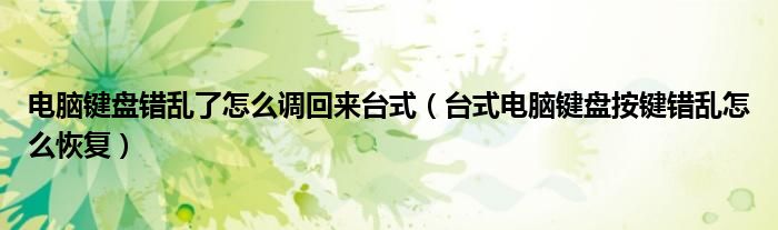 关于电脑键盘错乱了怎么调回来台式,台式电脑键盘按键错乱怎么恢复这个很多人还不知道,今天菲菲来为大家解答以上的问题,现在让我们一起来看看吧!