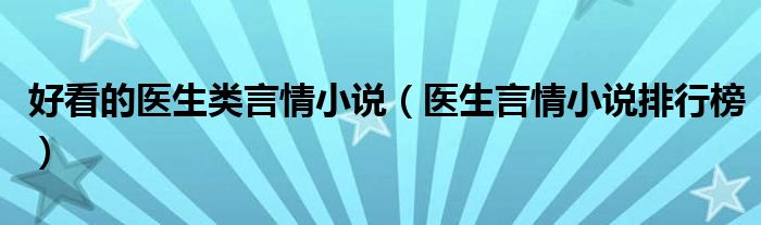 关于好看的医生类言情小说,医生言情小说排行榜这个很多人还不知道,今天菲菲来为大家解答以上的问题,现在让我们一起来看看吧!