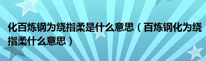 关于化百炼钢为绕指柔是什么意思,百炼钢化为绕指柔什么意思这个很多人还不知道,今天菲菲来为大家解答以上的问题,现在让我们一起来看看吧!