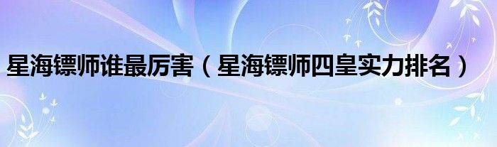 关于星海镖师谁最厉害,星海镖师四皇实力排名这个很多人还不知道,今天菲菲来为大家解答以上的问题,现在让我们一起来看看吧!