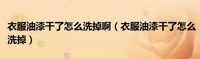 大家好,小晋来为大家解答以下问题,关于衣服油漆干了怎么洗掉啊,衣服油漆干了怎么洗掉很多人还不知道,今天让我们一起来看看吧!