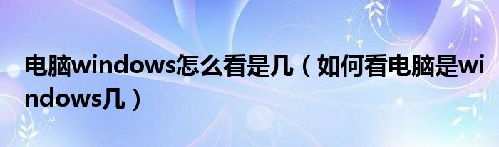 关于电脑windows怎么看是几,如何看电脑是windows几这个很多人还不知道,今天菲菲来为大家解答以上的问题,现在让我们一起来看看吧!