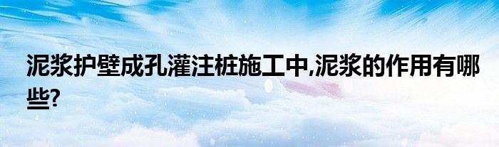 关于泥浆护壁成孔灌注桩施工中,泥浆的作用有哪些?这个很多人还不知道,今天菲菲来为大家解答以上的问题,现在让我们一起来看看吧!