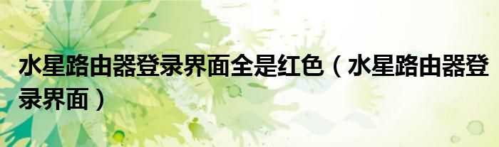 关于水星路由器登录界面全是红色,水星路由器登录界面这个很多人还不知道,今天菲菲来为大家解答以上的问题,现在让我们一起来看看吧!