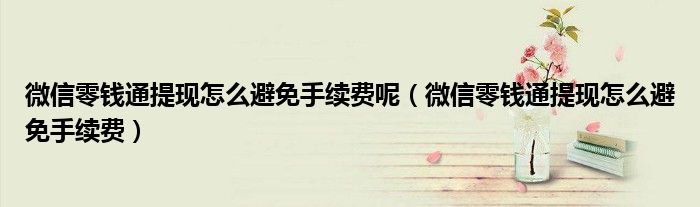 关于微信零钱通提现怎么避免手续费呢,微信零钱通提现怎么避免手续费这个很多人还不知道,今天菲菲来为大家解答以上的问题,现在让我们一起来看看吧!