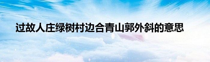 关于过故人庄绿树村边合青山郭外斜的意思这个很多人还不知道,今天菲菲来为大家解答以上的问题,现在让我们一起来看看吧!