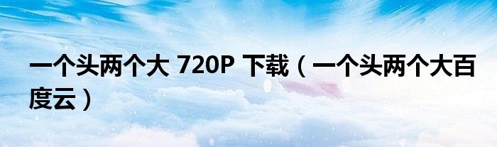 关于一个头两个大 720P 下载,一个头两个大百度云这个很多人还不知道,今天菲菲来为大家解答以上的问题,现在让我们一起来看看吧!