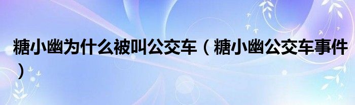 关于糖小幽为什么被叫公交车,糖小幽公交车事件这个很多人还不知道,今天菲菲来为大家解答以上的问题,现在让我们一起来看看吧!