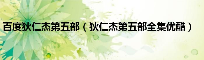 百度狄仁杰第五部(狄仁杰第五部全集优酷)