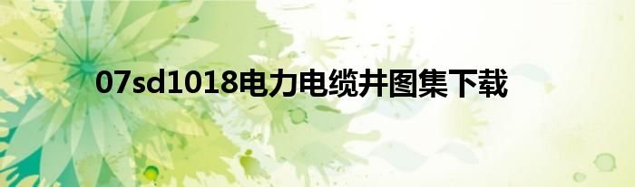 关于07sd1018电力电缆井图集下载这个很多人还不知道,今天菲菲来为大家解答以上的问题,现在让我们一起来看看吧!