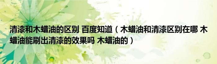 关于清漆和木蜡油的区别 百度知道,木蜡油和清漆区别在哪 木蜡油能刷出清漆的效果吗 木蜡油的这个很多人还不知道,今天菲菲来为大家解答以上的问题,现在让我们一起来看看吧!