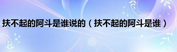 关于扶不起的阿斗是谁说的,扶不起的阿斗是谁这个很多人还不知道,今天菲菲来为大家解答以上的问题,现在让我们一起来看看吧!