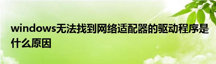 windows无法找到网络适配器的驱动程序是什么原因